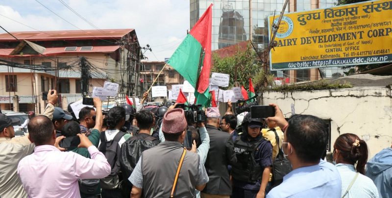 अखिल नेपाल किसान महासंघको नेतृत्वमा दुग्ध विकास संस्थानको कार्यालयमा धर्ना दिइएको हो ।