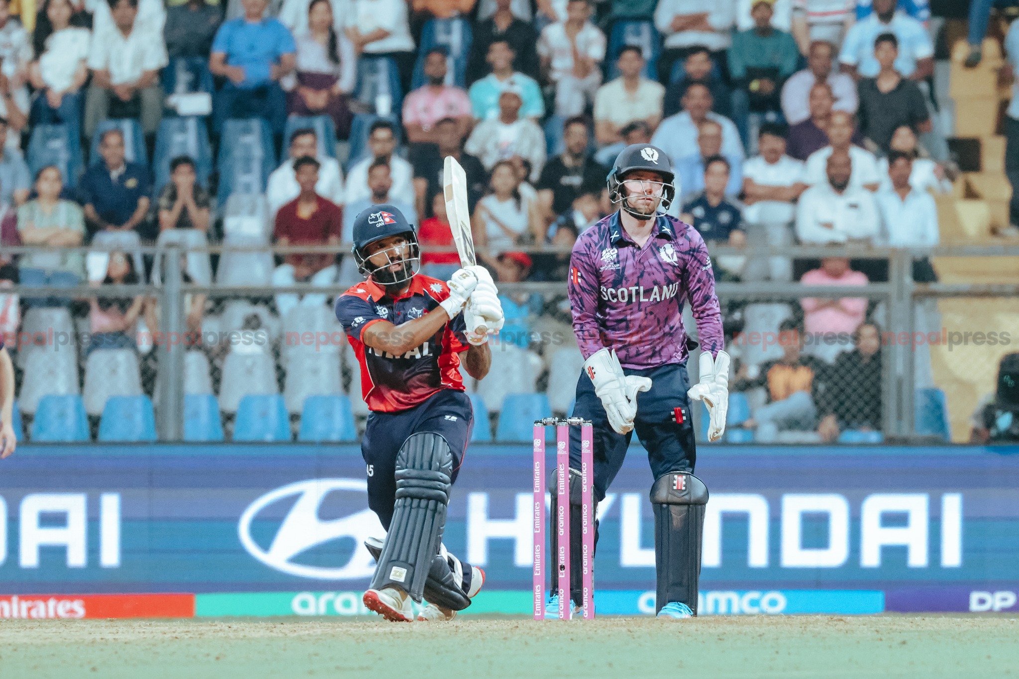 ९१ रनमै ५ विकेट गुमाएको नेपालका लागि कप्तान रोहित र दीपेन्द्रले इनिङ्स सम्हाल्ने प्रयास गरेका थिए । तर ५६ रनको साझेदारी गर्दै यो साझेदारी तोडियो । त्यसपछि नेपालले लगातार विकेट गुमउँदा अलआउट भयो ।